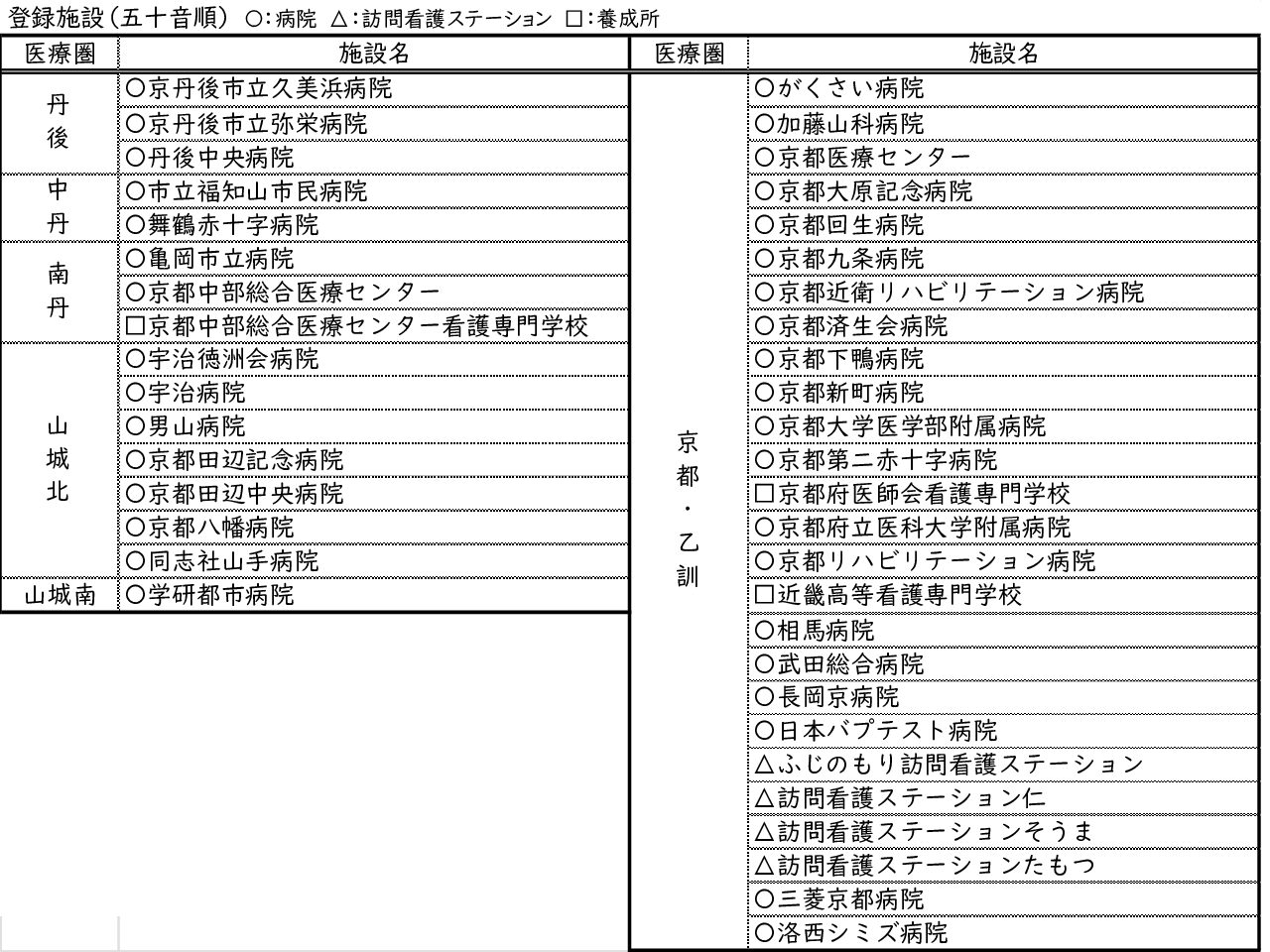 | 京都回生病院 | 京都九条病院 |